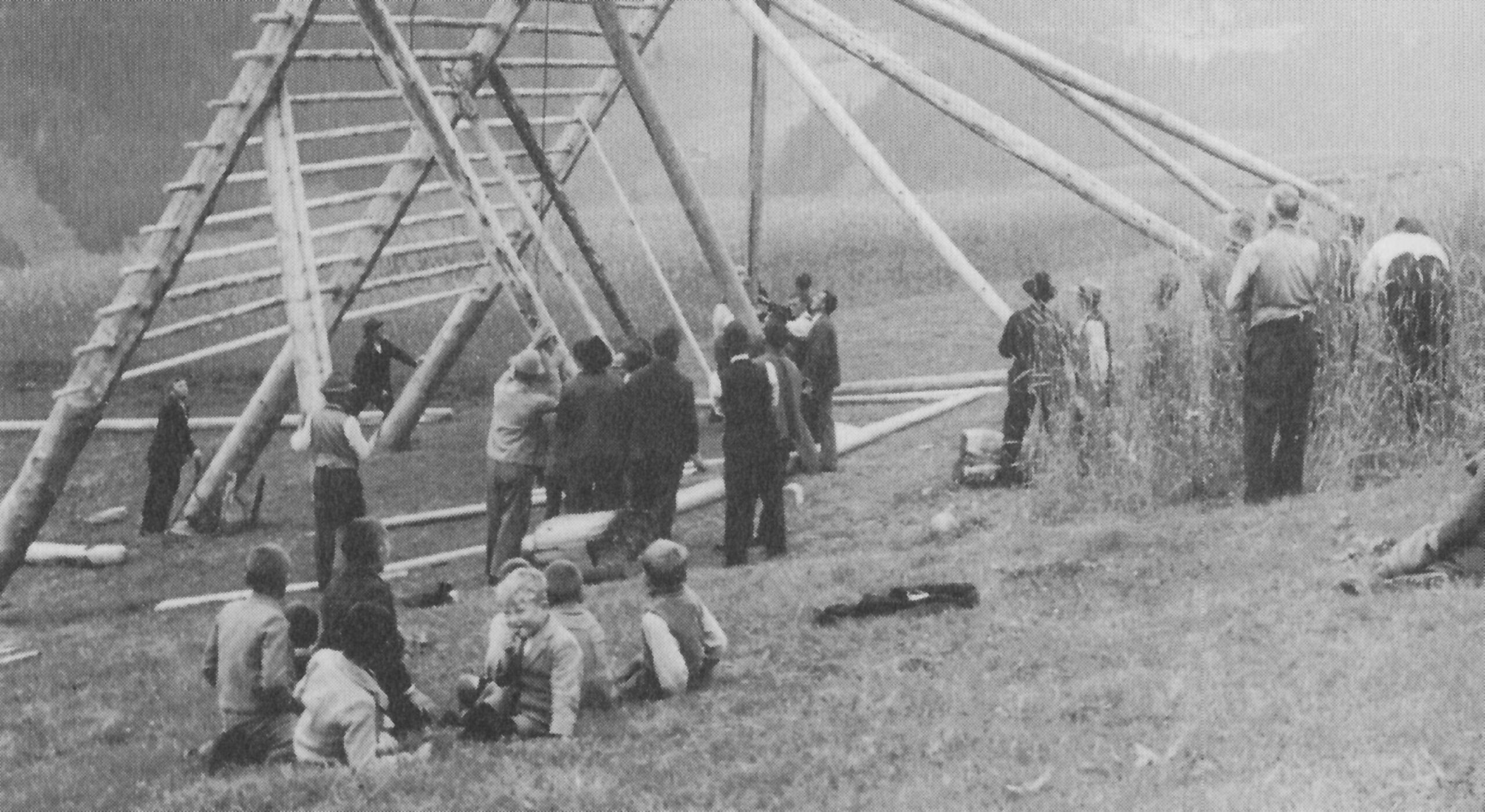 Quei che jeu seregordel vegneva la lenna dada dil bostger. Quei era lenna concedida per prezi reduciu. Ils posts dulavan ei giu. Sisum fagevan ei fuorma da tetg, giufuns eran ei rodunds. Tut ils posts vevan in crap suten. Entuorn la crappa mettevan ei nuot.